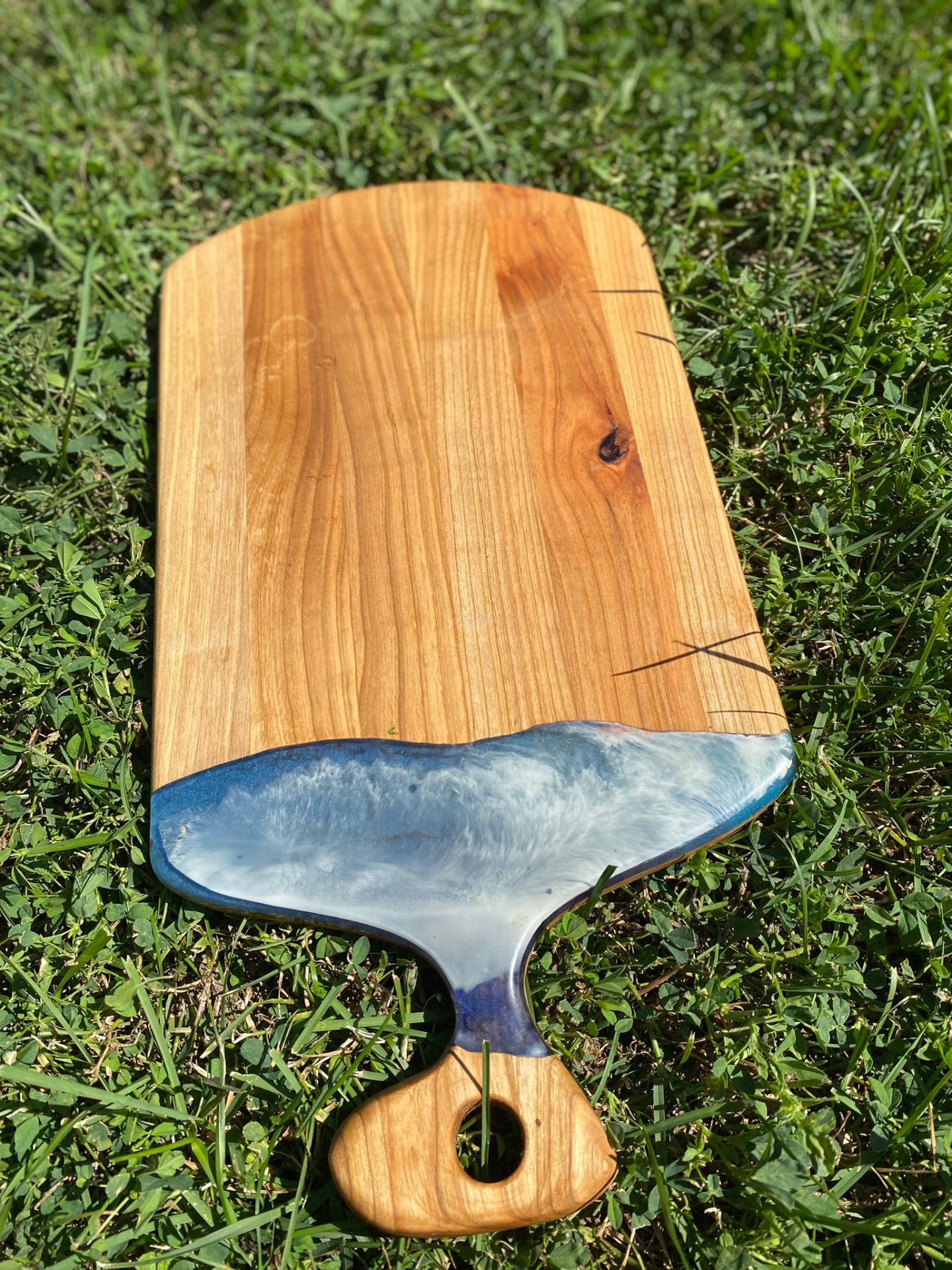 Tocător din lemn masiv de esență cireș cu inserții de rășină epoxidică