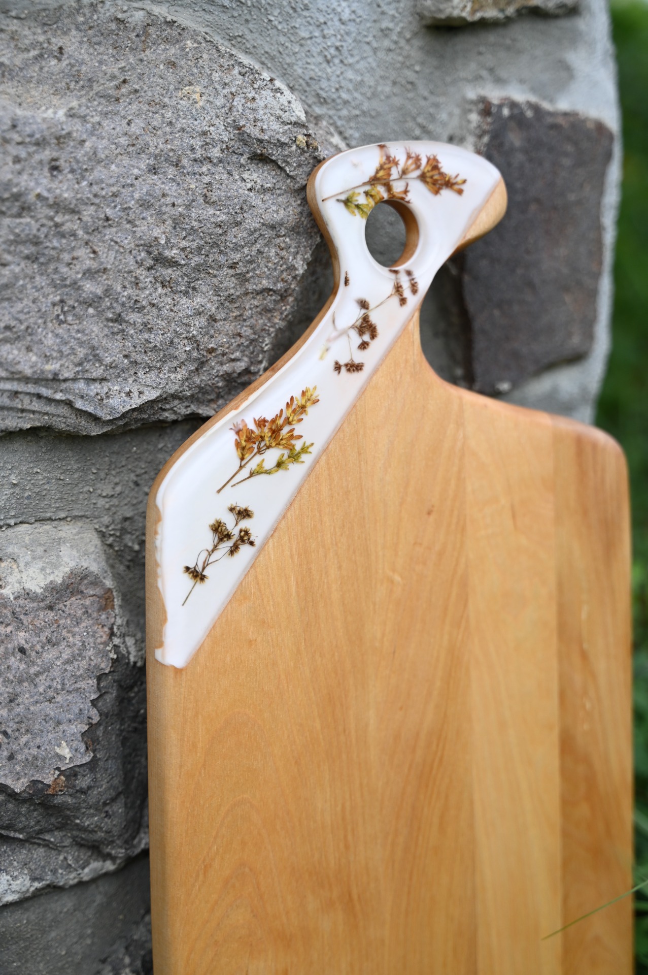 Nyírfa vágólap műgyanta berakással.